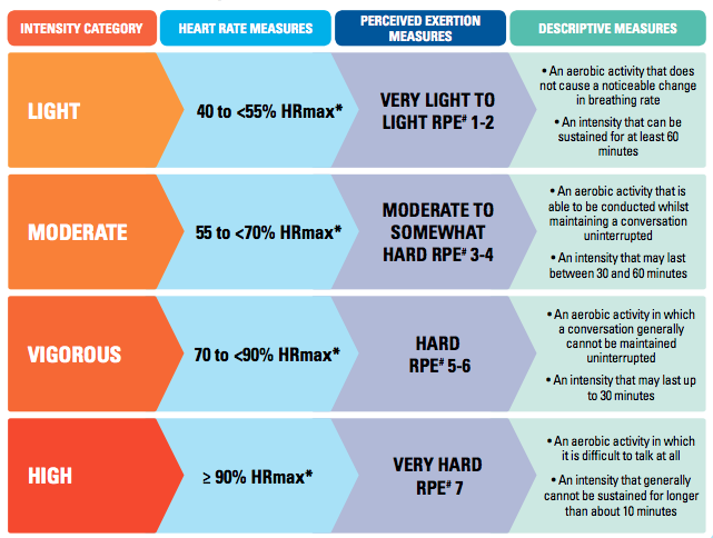 Looking back over the last month please describe your current physical activity/exercise levels in a typical week by marking how often, for how long and at what intensity. The graphic will help you with your answers.